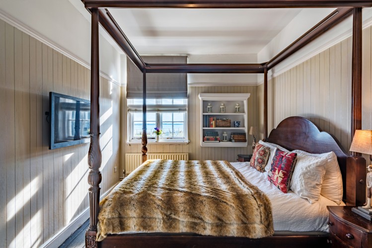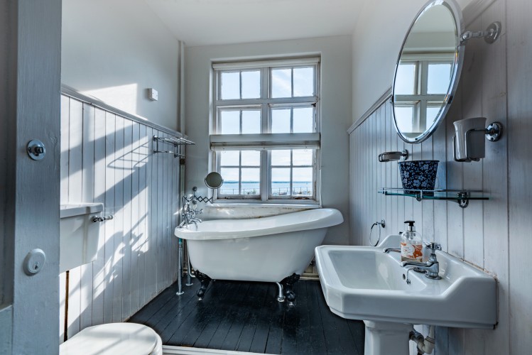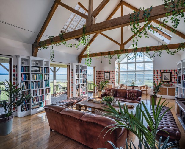 The Captain’s House is, as its name suggest, located by the water’s edge, with direct access to one of Osea’s shingle beaches. Set across two buildings, the Main House and the Coach House, it offers spacious, luxury living accommodation for large groups. Two living rooms, a large, well-equipped kitchen, sumptuous dining area seating up to 22, 9 bedrooms and 7 bathrooms ensure comfort of the very highest order. Whether settled in front of the roaring log burners, sinking into a roll top bath or enjoying sundowners around the fire pit, the Captain’s House is perfect for entertaining all year round. There’s plenty of space outside too, with patios, a verandah, dining furniture, sun loungers and a barbecue, all to the backdrop of the Blackwater Estuary.