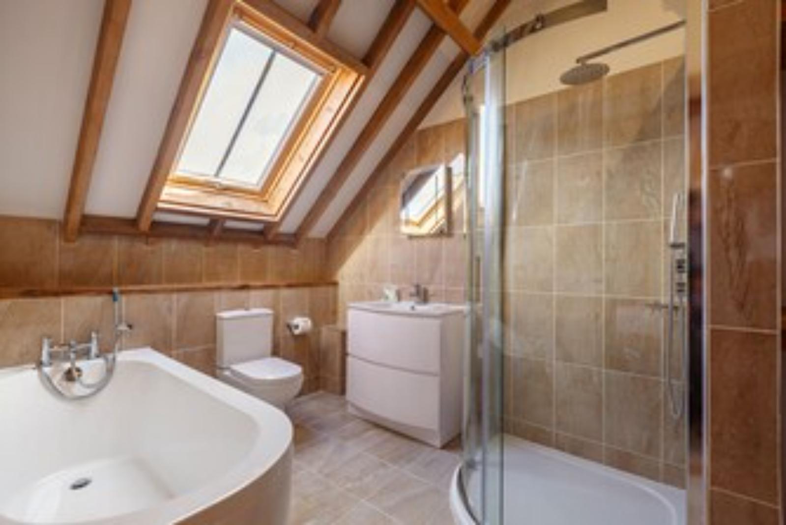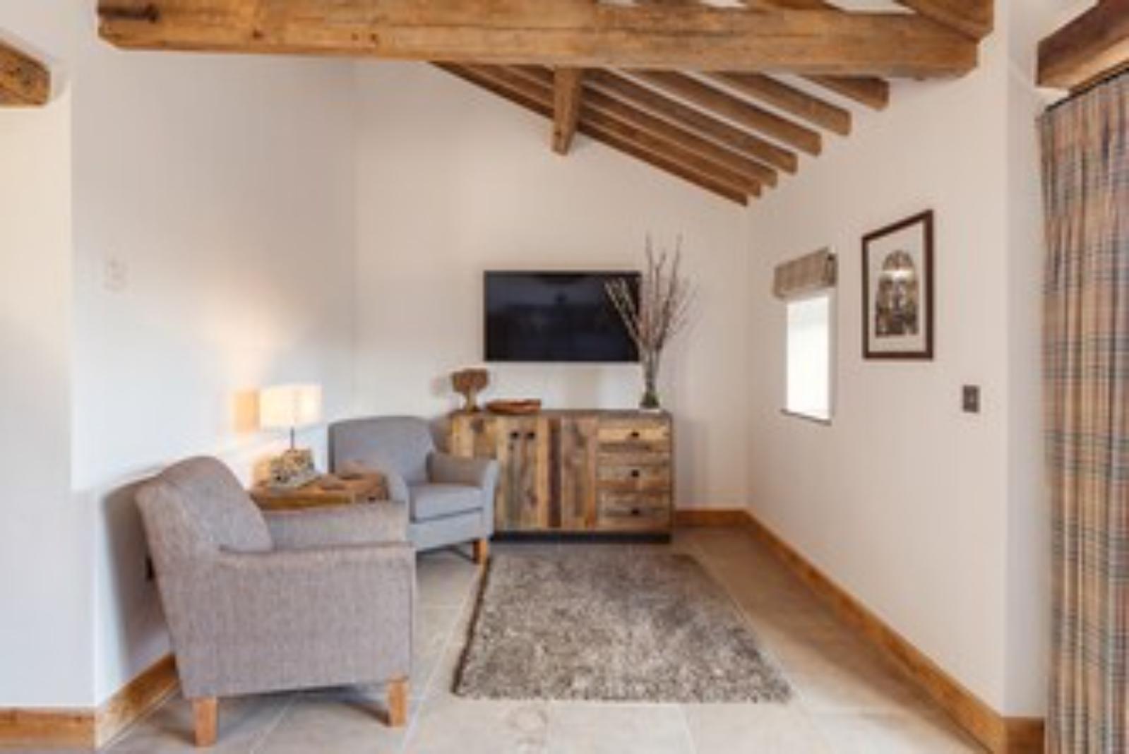 - Charming barn with full height windows and exposed beams