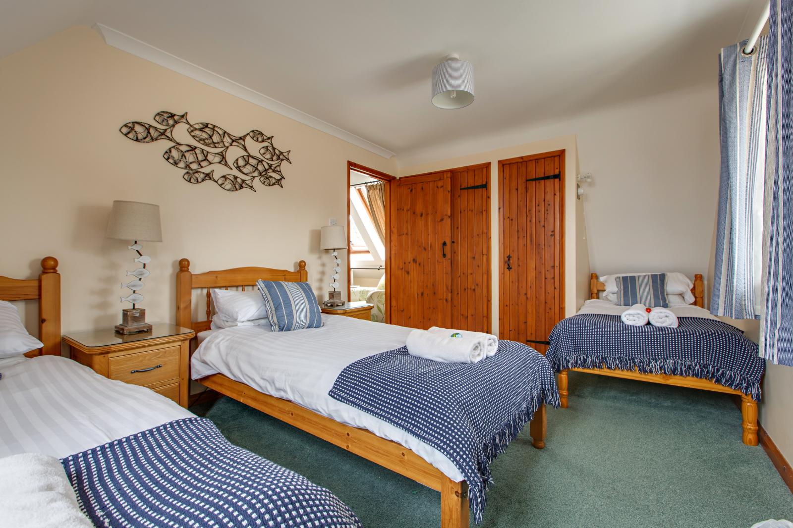 Barnett's sleeps 7 in 3 bedrooms. A ground floor twin, upstairs king and triple bedroom. On the ground floor it has a w/c and a walk in shower in the utility room so is ideal for those who prefer to remain on the ground floor..